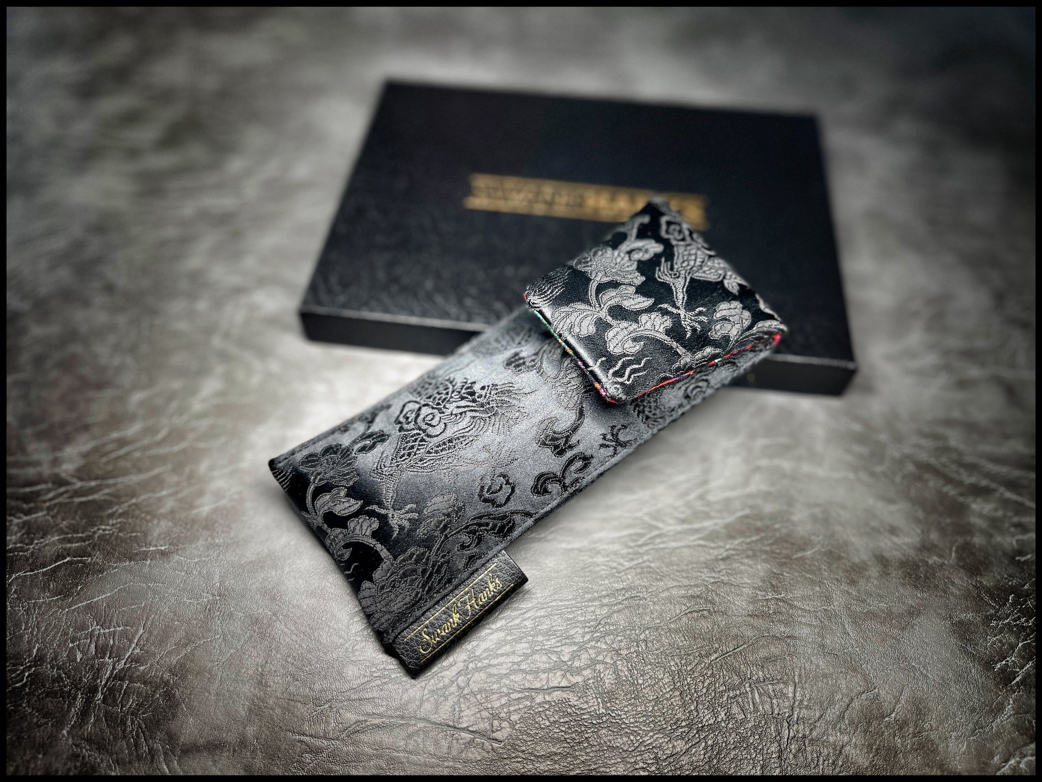 If blacked out is your thing, here ya have it. On the exterior, our best selling "murdered out dragon silk" and on the inside is a brand new very premium satin black dragonscale silk. Only a few up for grabs for the time being. Go get em!