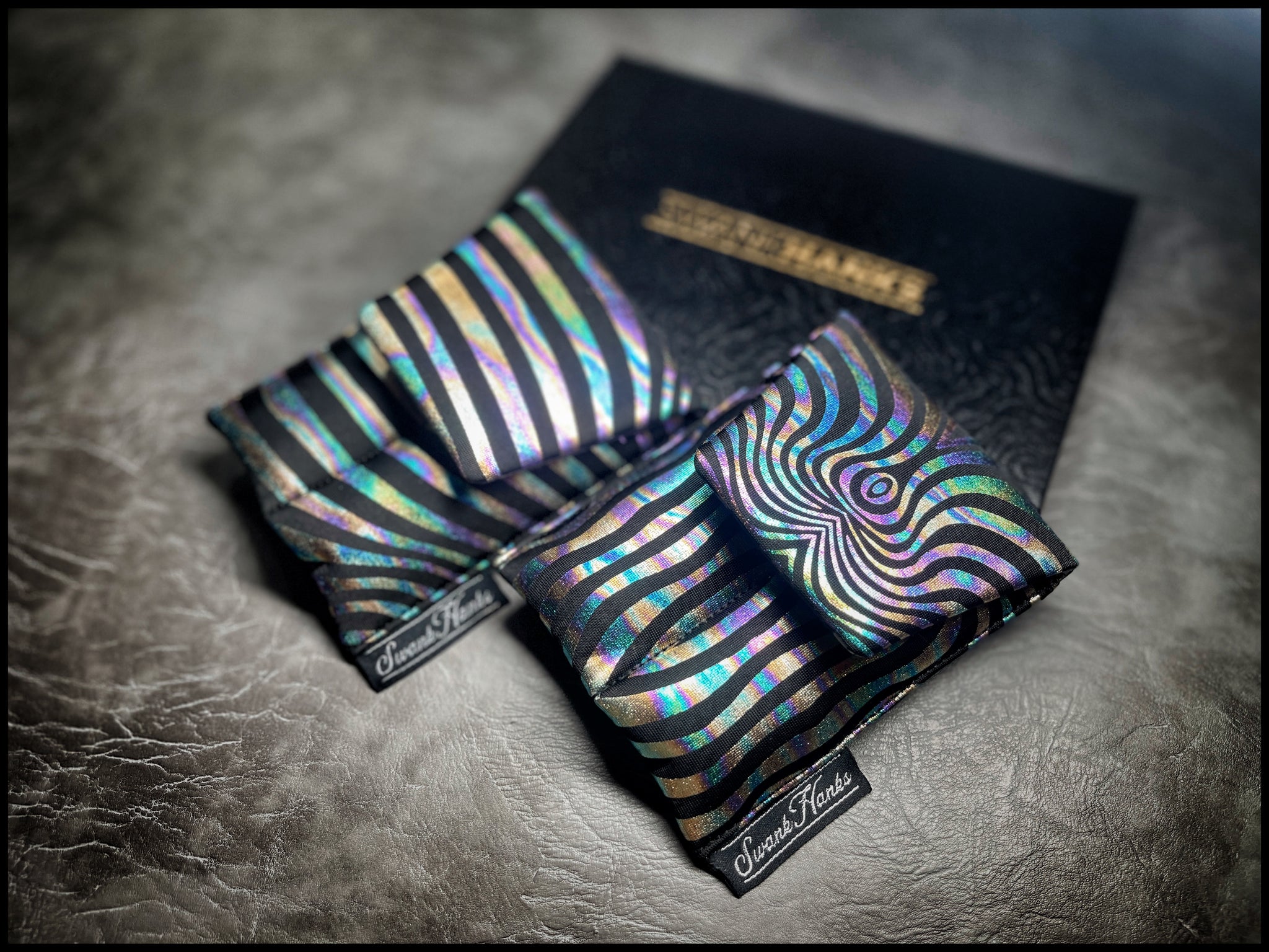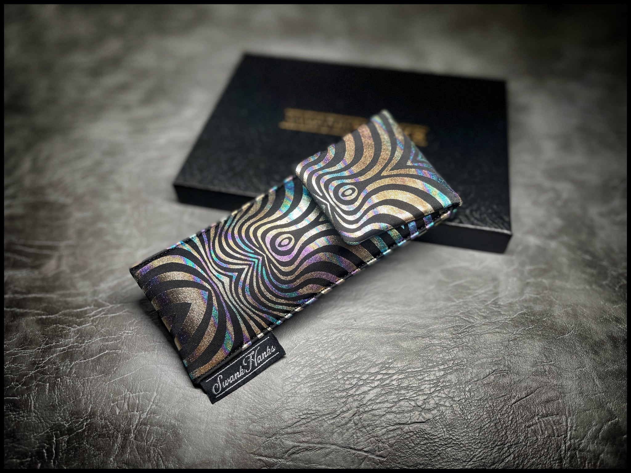 Funky to the extreme, these new pieces are made with a very tricky lycra material on the exterior that pops into a million colors in the light. And on the interior is our classic satin black silk. Each one of these is unique and they are in short supply. Grab em while ya can. Thanks guys enjoy! Also available in mini double slot.