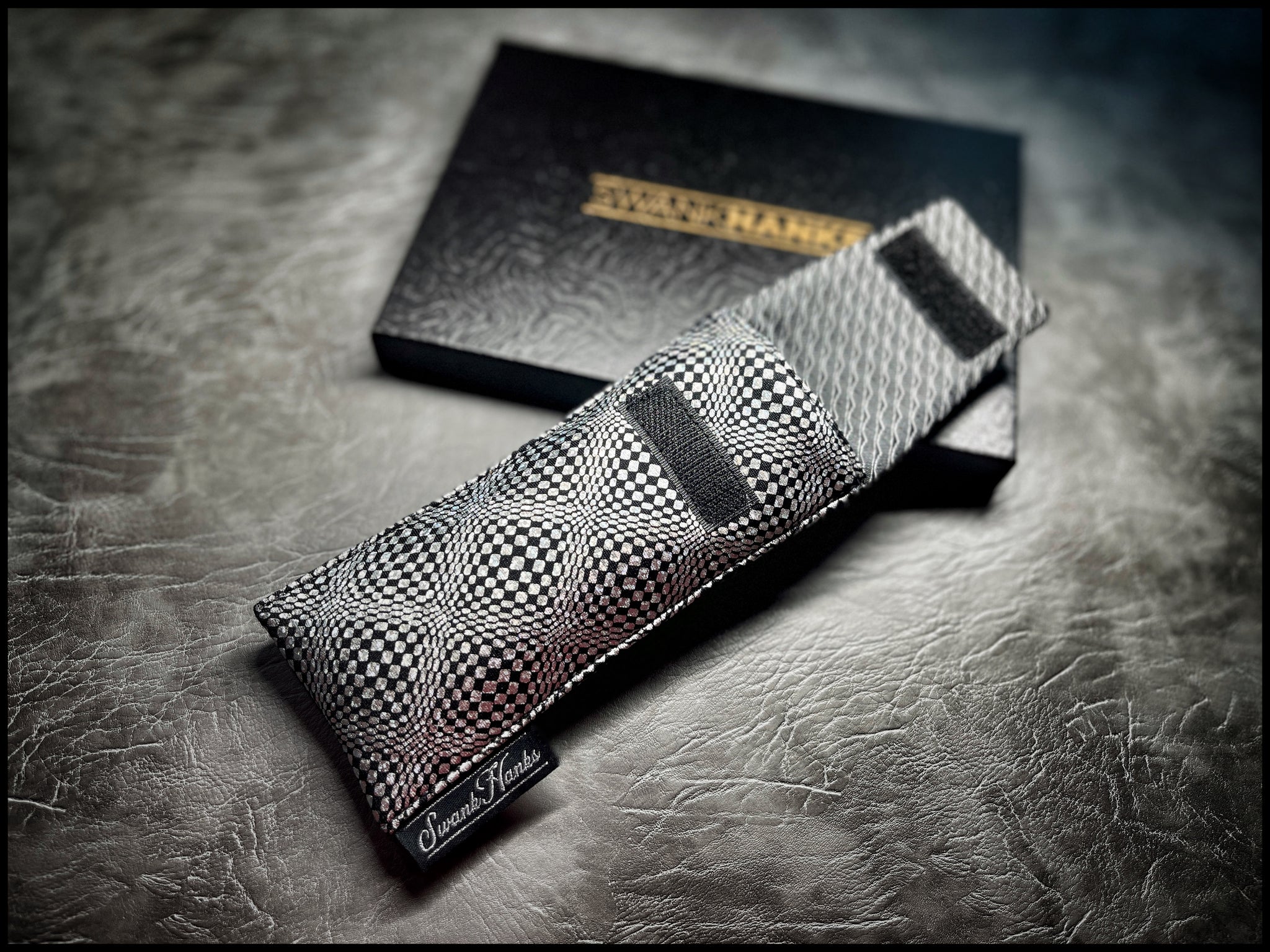 Bringing this one back by popular demand. Very funky lycra design with our satin gunmetal silk on the interior. We've also got these available in Mini Double Slots as well as a custom mini triple slot. These are also on sale throughout the weekend. Enjoy!