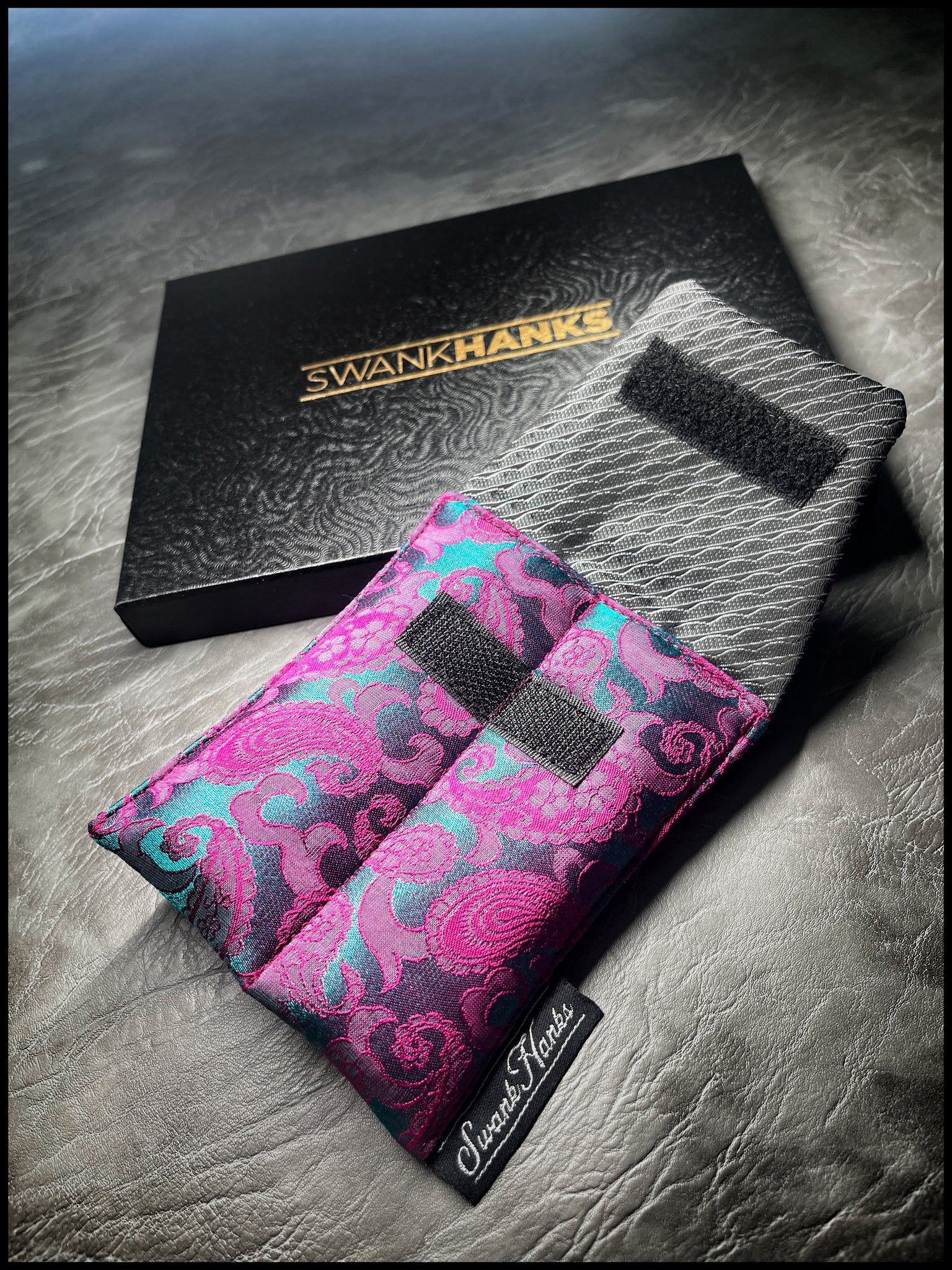 Again, no caption needed. These guys are always my absolute fave. This color shifting mulberry silk paisley is the highest grade 6A silk made. And that contrast between the neon pink and the blue is insane. On the interior is our satin gunmetal silk. Very limited for the time being.
